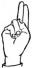 На ћирилици написано ДЕНИС УЛЕМЕК састоји се из 11 слова [?]. Исписано ћириличном једноручном азбуком за глувонеме: